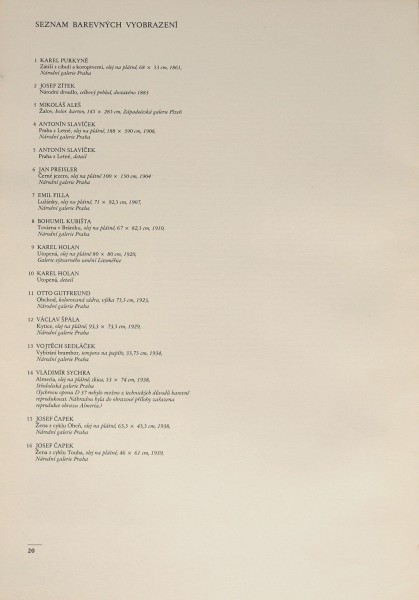 album reprodukcí k televiznímu cyklu, 20 stran textu a 16 barevných vyobrazení obrazů předních malířů, např. A. Slavíček, E. Filla, B. Kubišta, V. Špála, J. Čapek a další