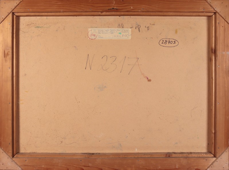 Popis: vzadu štítek s popisem díla a razítkem ČFVU, oděrky na rámu